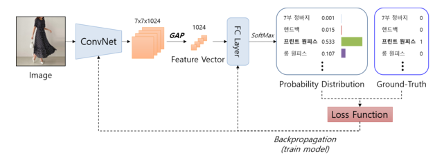 이미지 특징 추출 과정만 나타낸 것이다. 국내 홈쇼핑모아 라는 곳에서 사용 중인 알고리즘 예시다. (기고문)