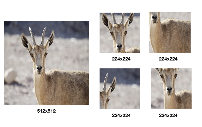 변환 후 각 이미지에서 object의 일부를 포함해 224*224 크기로 crop한다.