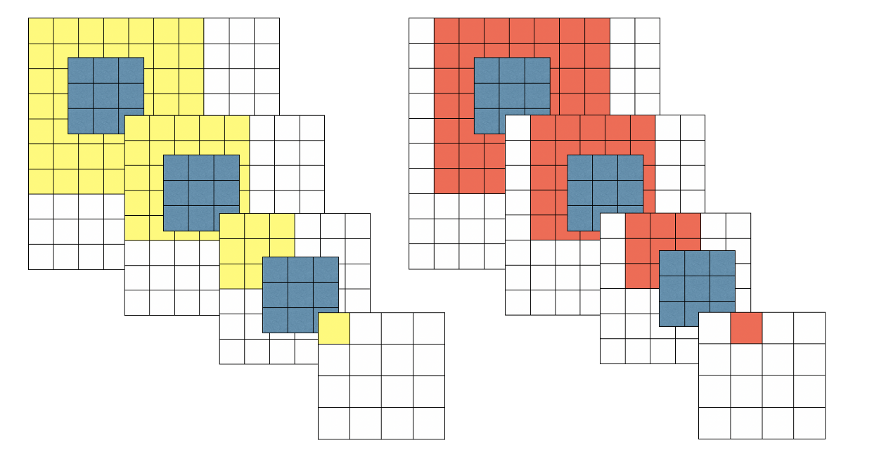 3*3 필터를 사용해 4*4 결과를 내기 위해 위와 같이 3번의 연산을 거쳐야 한다.